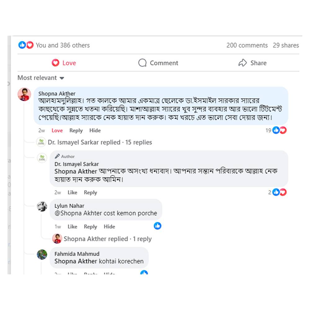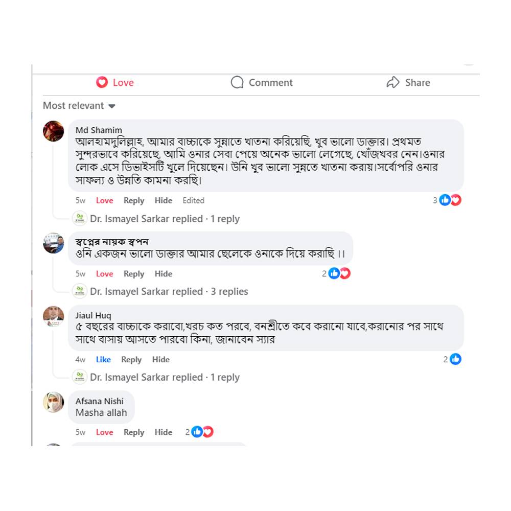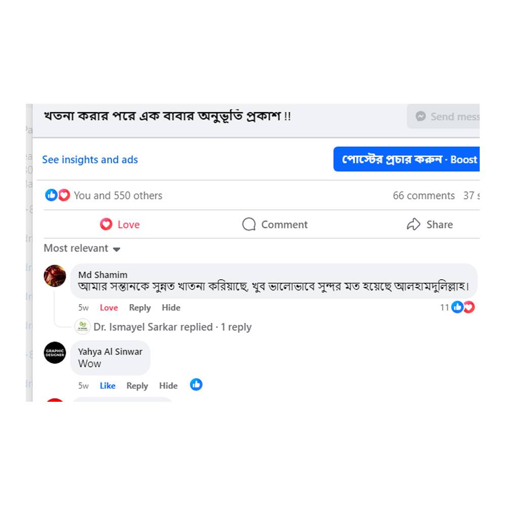 আমরা শুধু মাত্র মুসলমানিকে বিশেষভাবে প্রাধান্য দিচ্ছি বিষয়টি এমন নয়। মুসলমানির পর বাচ্চার মেডিসিনের বিষয় এবং মুসলমানির পরবর্তী সময়ে বাচ্চা সুস্থ হওয়া পর্যন্ত সবসময় আমরা সাপোর্টিভ।